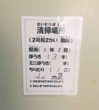 今年度から、掃除道具のロッカーにも新しく掲示をしています。掃除道具を大切に使いましょう。