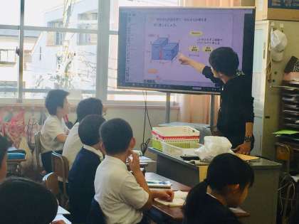 デジタル教科書を使って、視覚的にわかりやすいように工夫しています。