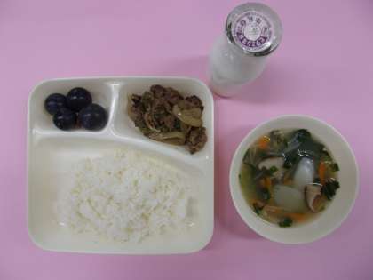 今日の献立は、「プルコギ、トック、ブドウ(巨峰)」でした。、