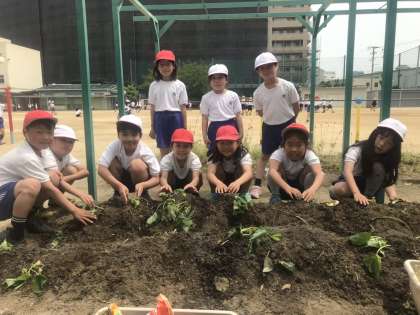 2年生が、サツマイモ植えをしました。