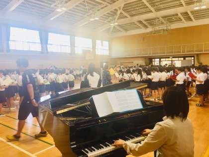 今年度初めて、1年生にとっては小学校生活始めての音楽集会をしました。