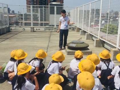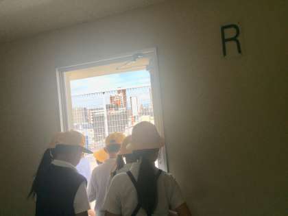 3年生は、4月から社会科の学習を始めました。今日は校舎の屋上に上がり、東西南北の各方位にどんなものが見えるのか、見えるものをノートに書き込みました。