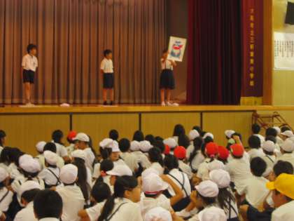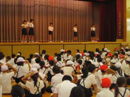 毎週木曜日は児童集会の日です。今日は「妖怪ウォッチクイズ」でした。