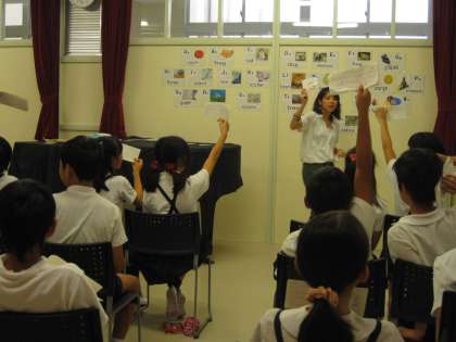 今日は、5年生の英語活動がありました。ネイティブスピーカーのアリソン先生が来てくださる日でした。フォニックスという指導法で、正しい発音の仕方を学んでいます。