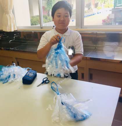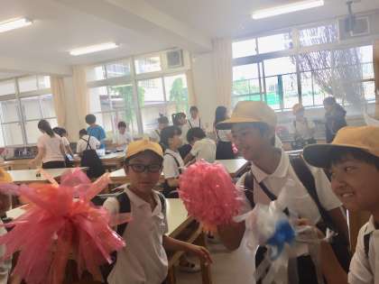 今日は、運動会での応援の時に使う「ポンポン」を作りました。