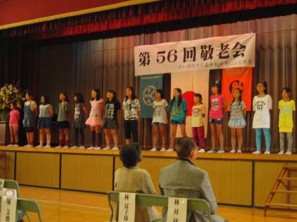 本日、9月15日は、三軒家東地域の敬老会が本校の体育館で盛大に行われました。