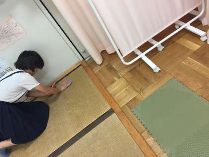 なかよし教室の場所を担当している児童です。すみずみまで、ていねいにそうじをしていました。