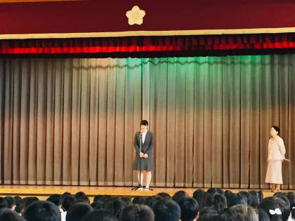 5月27日(月)児童朝会【学校支援学生ボランティアさんの紹介】