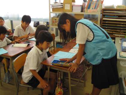 今日は、まず、ペアでしおり作りをしました。高学年の児童が低学年の児童のサポートをして、楽しく活動しました。そして、自分たちのお店で必要な準備物の確認をしたり、役割分担をしたりしました。当日を楽しみにしていてください。学校開放デーです。保護者や地域の方々のお越しをお待ちしています。