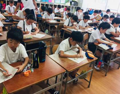4年生では、漢字検定試験の合格に向けて、自主学習をしていました。自主学習の習慣が身につくように、取り組んでいます。