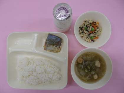 今日の献立は「さごしのしょうゆだれかけ、すまし汁、高野どうふのいり煮」でした。