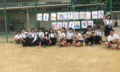 今年の運動会のスローガンは、『心を一つに!協力し合う 燃えろ!三東魂(さんとうだましい)』です。