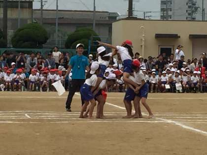 運動会の様子です。5.6年団体競技「騎馬戦〜いざ出陣〜」です。