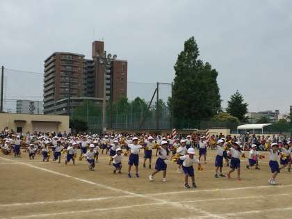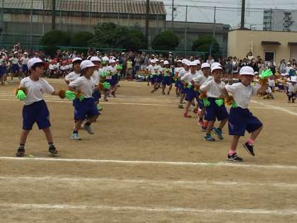運動会の様子です。1.2年生団体演技「大きな愛でマスカット♡」です。