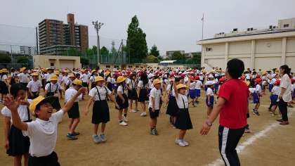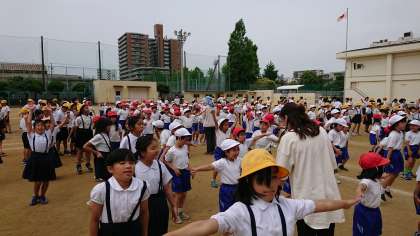 今月から、手と足で違う動きをする「異体操」を行っています。例えば、両手は上横上横と動かし ながら、足は、グーグーパーパーを繰り返すような動きをします。頭も働かせることになるので、結構、脳も活性化されるようです。