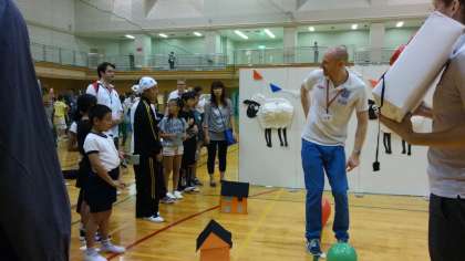 スタンプラリー形式でコーナーめぐりをしました。英語の質問に英語で答えると、スタンプやサインがもらえ、緊張しながらも楽しくコーナー体験ができました。