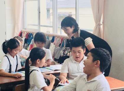 今日は、アメリカの大学を卒業されたMami先生に来ていただきました。子どもたちは、天気について、元気よく英語で伝えていました。