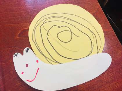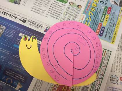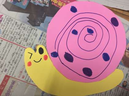 今日は、なかよし集会で、カタツムリづくりをしました。