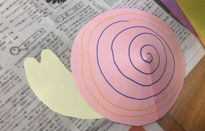 今日は、なかよし集会で、カタツムリづくりをしました。