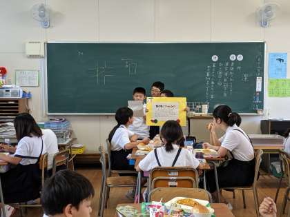 17日(月)〜21日(金)は、もぐもぐチャレンジ週間です。給食委員会が、宣伝に各学級を周りました。