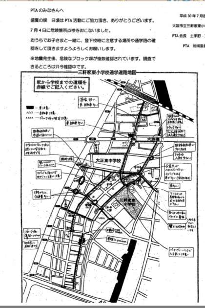 昨年度、PTAの方が行なってくださった校区内の危険な場所については、学校ホームページ右欄【安全・安心のために】に載せています。