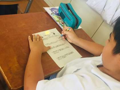 5年生の様子です。交通安全テストを活用して、普段の自転車の乗り方など、交通ルールを守っているのかを振り返って、セルフチェックをしています。