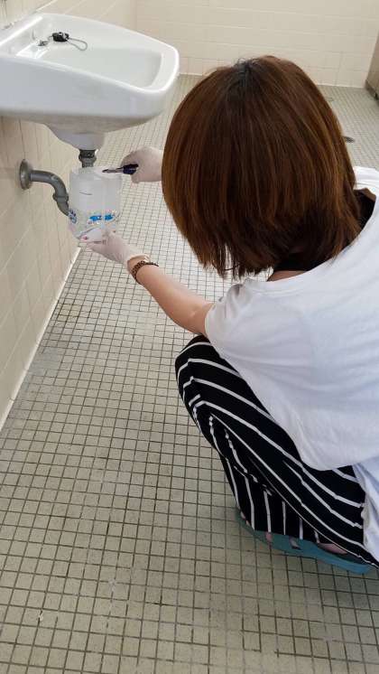 PTAの役員の方と保健委員会の方が、子どもたちがトイレを気持ちよく使えるように、虫よけを設置してくださいました。