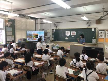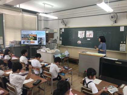 今日の3時間目に、1年生で、栄養教諭による食育の授業を実施しました。