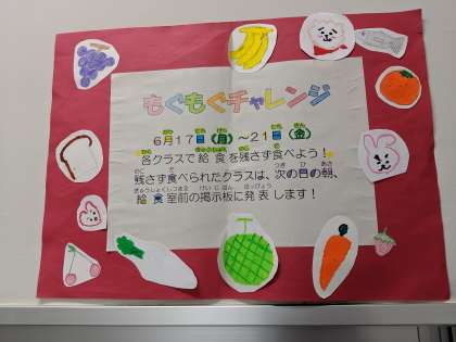 もぐもぐチャレンジは、各クラスで給食を残さず食べようという取り組です。