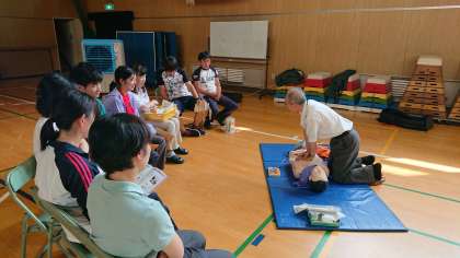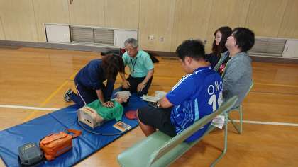 明日から始まるプール水泳指導に備えて普通救命講習を行いました。