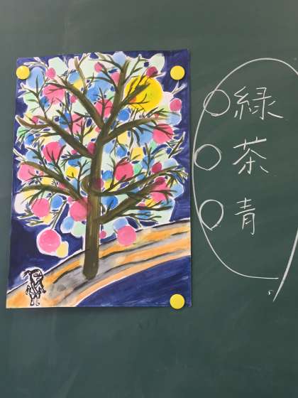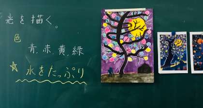 4年生は、図工の時間に、「モチモチの木」をかいています。教職員が指導用にかいた「モチモチの木」です。