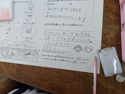 今日の4時間目に、2年生で、栄養教諭による食育の授業を実施しました。「よくかんで食べよう」というテーマでみんな集中して学習していました。