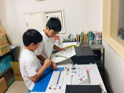 放送委員会の児童が、友だちと役割を決めて、朝の放送をしていました。