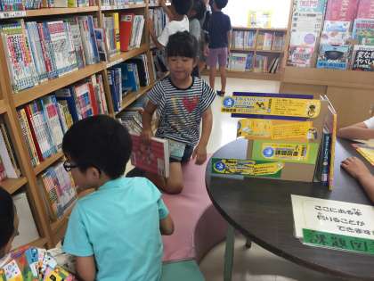 今日はプール開放を行いませんでしたが、図書館開放はしました。