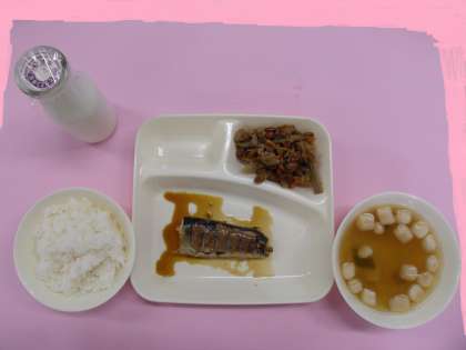 今日の献立は「さんまのさんしょう焼き、すまし汁、ごぼうのみそ豆煮」でした。