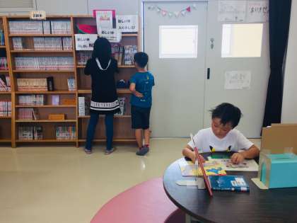 今日の図書館開放の様子です。プール開放の前後に参加していたり、いきいき教室で参加している児童がいました。PTAの図書館開放の支援で、親子で参加されている方もおられました。
