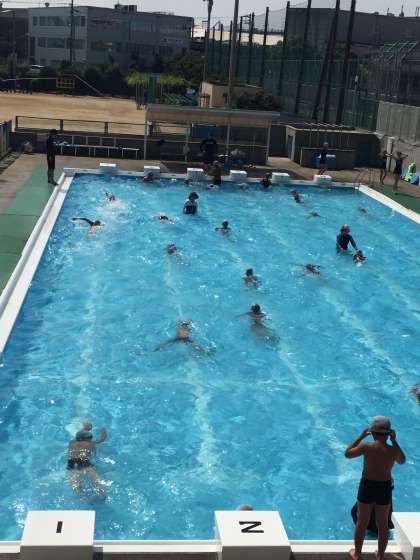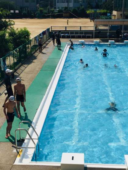 今日は、今年度最後の夏休みプール開放を行いました。大阪成蹊大学から教員をめざしている大学生が、ボランティアとして参加してくださいました。昨日の大阪市児童水泳記録会で活躍していた児童も参加し、気持ち良く泳いでいました。次は、8月8日(木)に行われる第60回大阪府児童泳力記録会・中央大会に参加します。