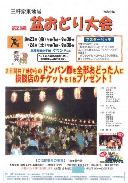 【地域からのお知らせ】三軒家東地域 盆おどり大会