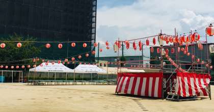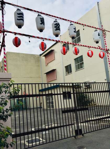 明日からの盆おどりの開催について連絡します。警報が出ない限りは、雨天でも基本的開催します。雨がひどい場合は、模擬店を廊下に移動して行います。