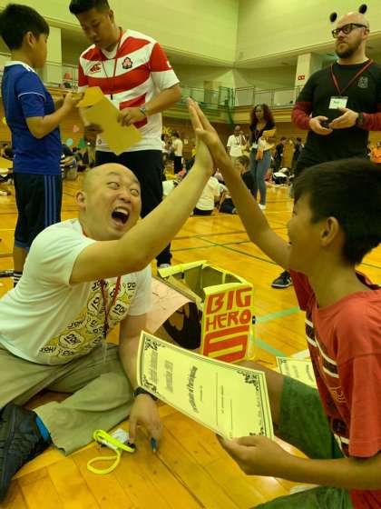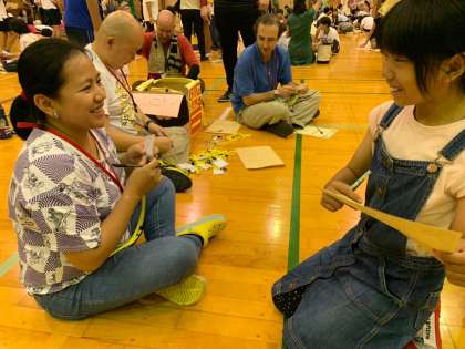 後半は英語で折り紙を一緒に折り、ピカチュウとスヌーピーを作りました。