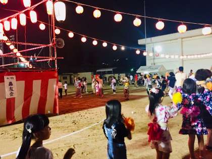 盆おどり大会の様子です。「盆おどり マスター バッチ 2019」です。