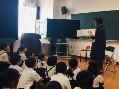 大正図書館から「ひまわりの会」の方が来ていただき、1年生と2年生に読み聞かせをしてくださいました。
