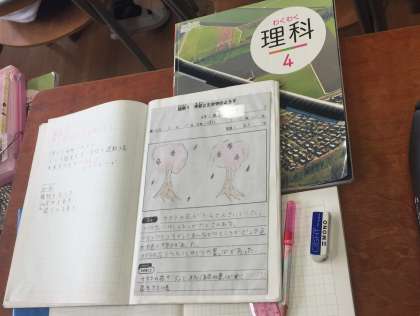 4年生の理科学習の様子です。春に観察したサクラは、今はどのように変化しているのかを学習しています。授業で、NHK for
