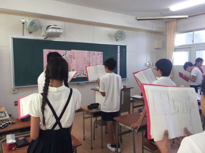 児童は、物語の内容理解を深めるために、音読に取り組んでいます。目的によって、色々な音読の方法に取り組んでいます。