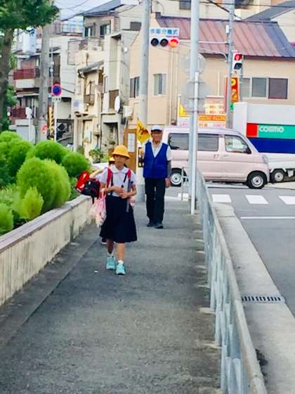 毎朝、子ども見守り隊の方が安全を見守ってくださっています。今日も子どもたちは、元気にあいさつをしていました。今学期から、児童の登下校時には新たに標識を設置しています。