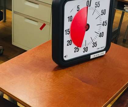 なかよし学級では、視覚的にわかりやすい時計を使っています。時計を見ながら、学習を進めています。