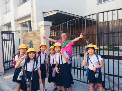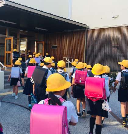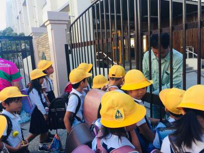 今日は、児童の登校時に大正区長の吉田康人さんが来られました。児童は区長さんと元気にあいさつをしていました。開門前、開門時の様子です。