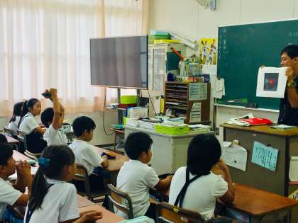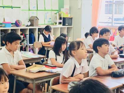 4年1組では、毎日朝の会で、学級担任が1つのテーマずつ読んでいます。今日のテーマは、『ブラックホールって何?』でした。子どもたちは、興味深々に聞いていました。