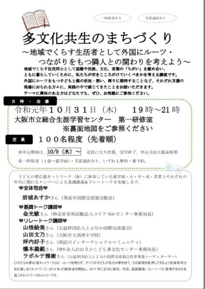 【ご案内】「多文化共生のまちづくり〜地域でくらす生活者として外国にルーツ・つながりをもつ隣人との関わりを考えよう〜」