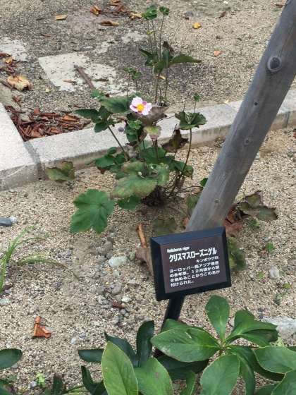 玄関に咲いている花 「オミナエシ」と「クリスマスローズニゲル」です。